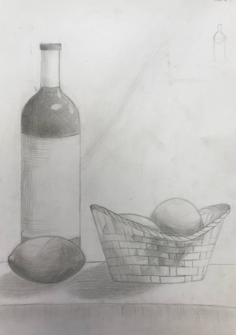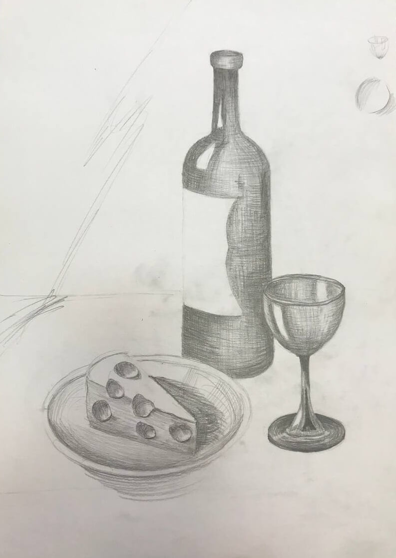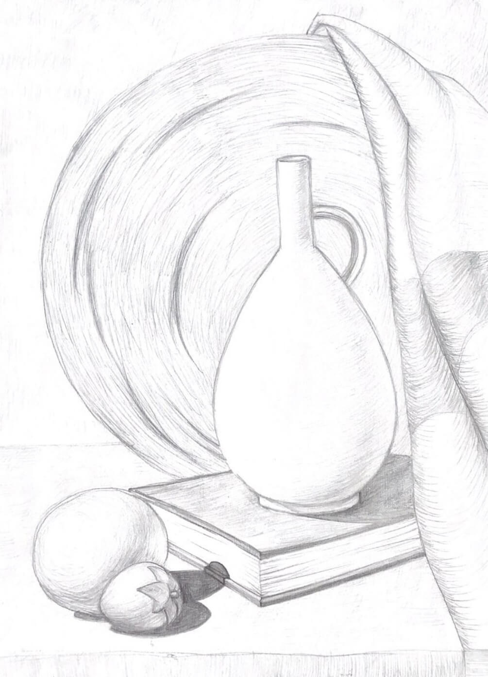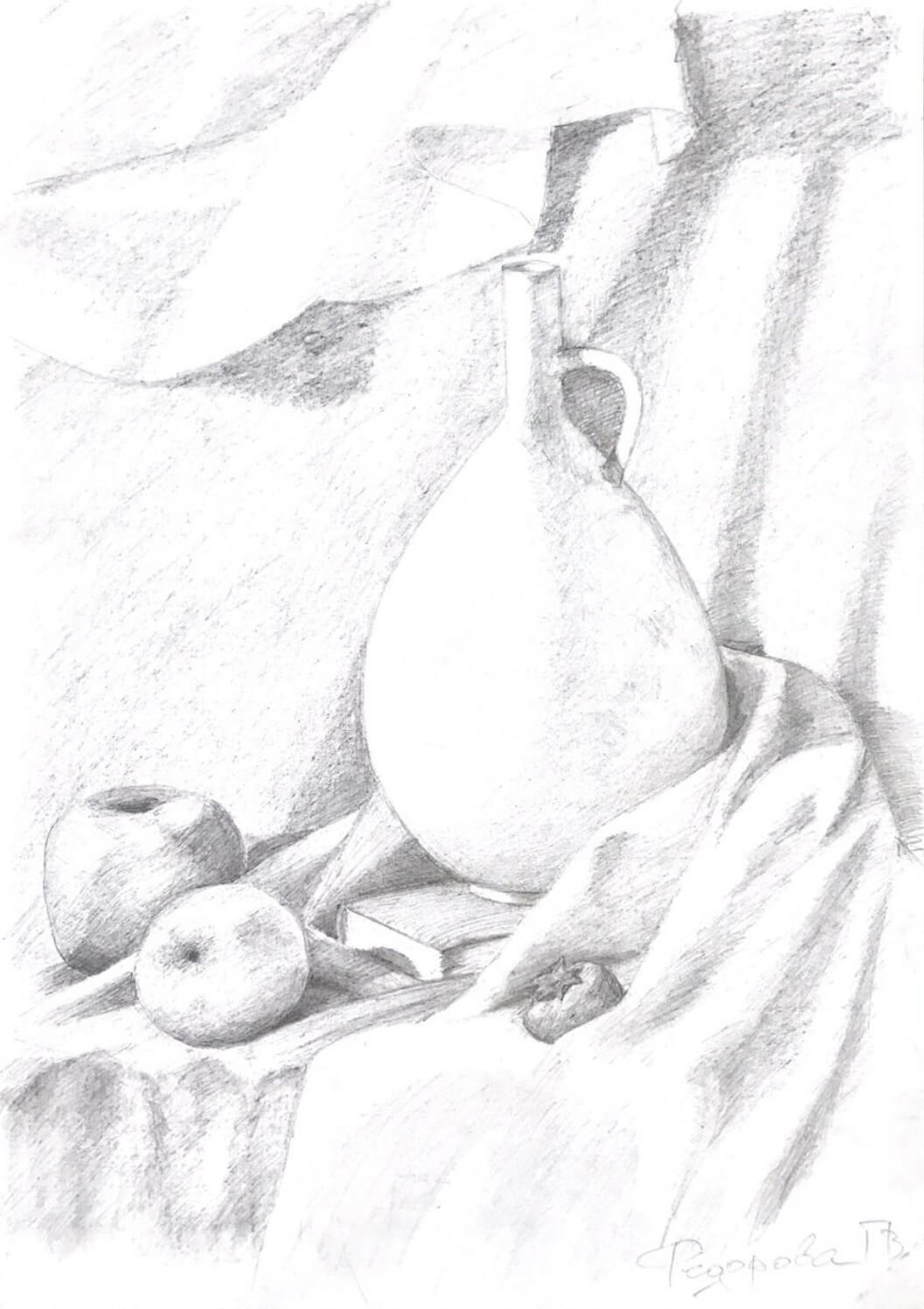 • Сделаете упражнения на чувство материала. Нарисуете натюрморт углем: сначала линейно, затем тонально, а потом скомбинируете эти два метода.